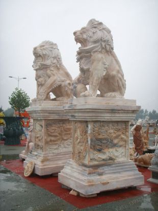 曲阳石雕 曲阳雕塑 动物雕塑 石雕狮子 石狮子价格 石狮子图片 欧式石狮子-OS365