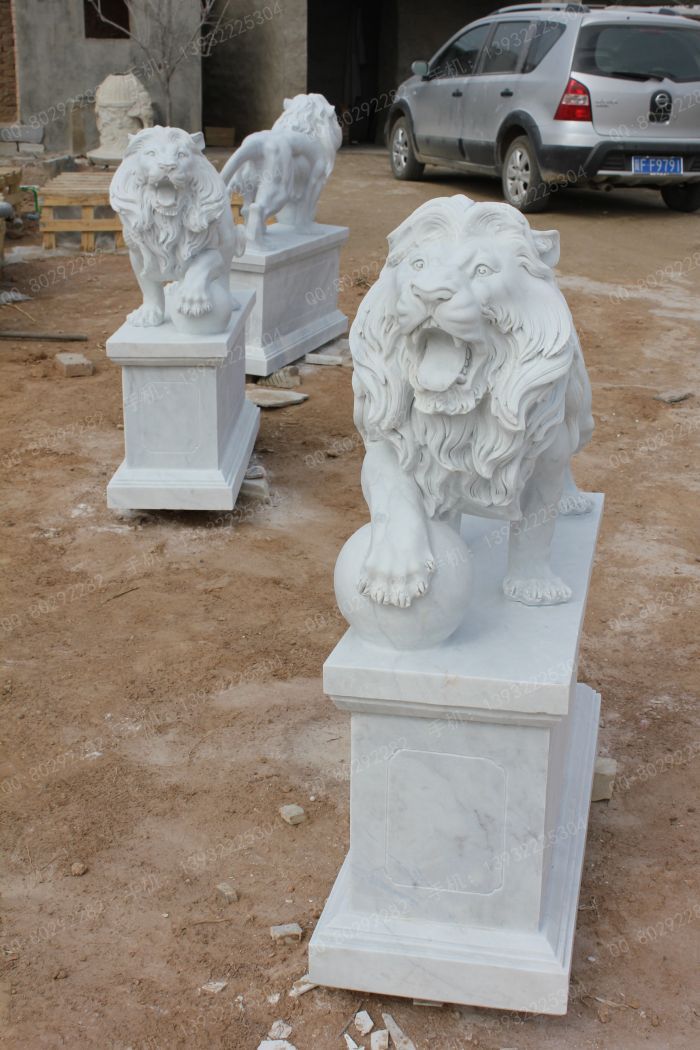 产品名称:曲阳石雕 曲阳雕塑 动物雕塑 石雕狮子 石狮子 狮子雕塑 欧式石雕狮子-OS083