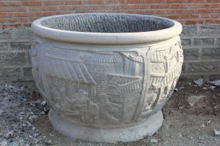仿古石雕鱼缸 仿古石雕花盆-YG002