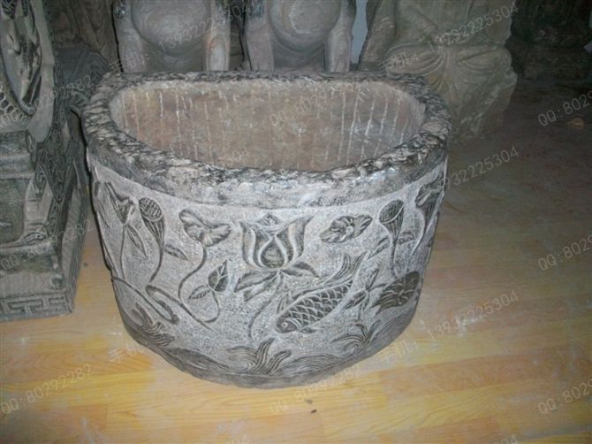 产品名称:曲阳石雕 曲阳雕塑 仿古石雕鱼缸 仿古石雕花盆 生态鱼缸 仿古鱼缸 汉白玉石雕鱼缸花盆 YG078