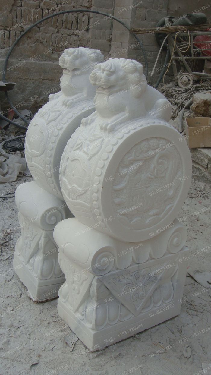 曲阳石雕 曲阳雕塑 仿古石雕门墩 石雕门墩图片 汉白玉门墩 仿古石雕抱鼓石 - MD452