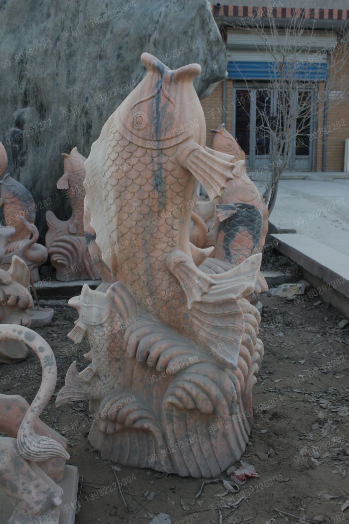 动物石雕鱼,石雕鱼雕塑,园林石雕鱼雕塑,鲤鱼雕塑,石雕喷泉鱼雕塑,曲阳石雕厂,曲阳雕塑公司 -- Y012